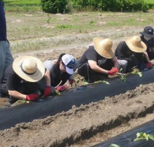 はみんぐ利用者たちは、昨年秋のサツマイモ掘りの経験者ということで、手早く丁寧に和気あいあいとした雰囲気で定植を行っていました。