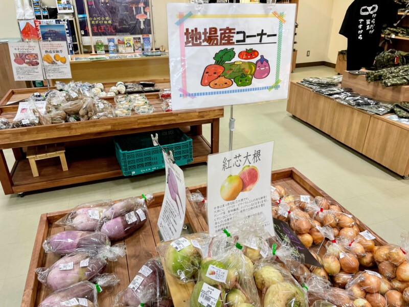 「地域物産コーナー」には、静岡県産(三島西麓やさい)や富士山麓の新鮮野菜、富士山・箱根の名産品や特産品がずらり。