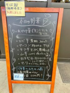 入り口には本日入荷した地場野菜の看板!