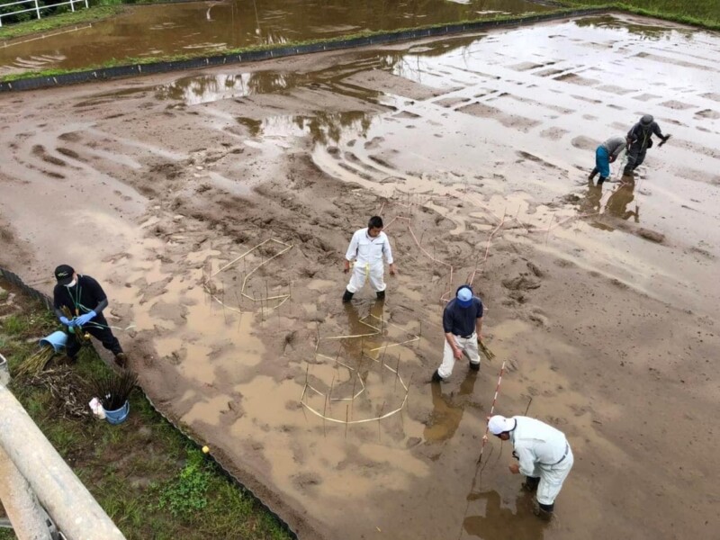 色が違う稲を植えて田んぼがアート作品になるのです!