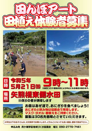 【伊豆市】5/21日(日) 月ヶ瀬「田んぼアート」田植え体験 参加者募集!