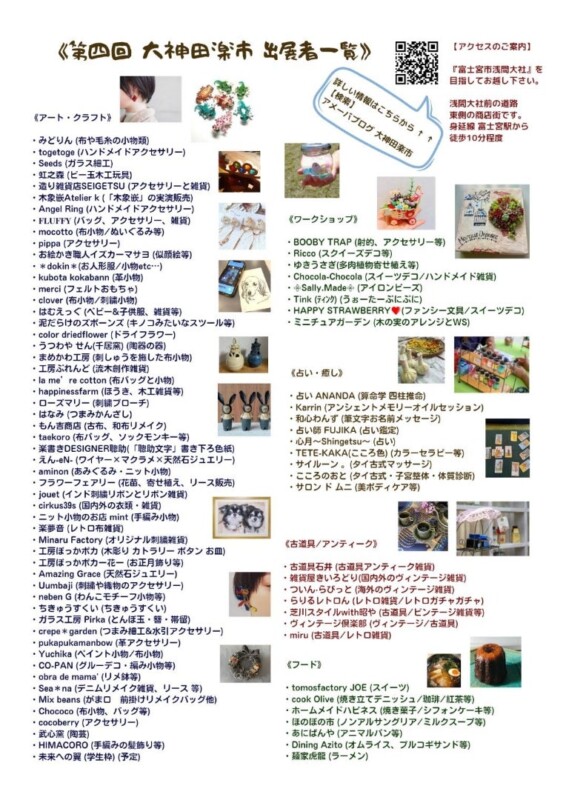 古道具・クラフト・アート・ワークショップ・占い・癒しなどなど、たくさんの出展があります。