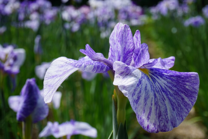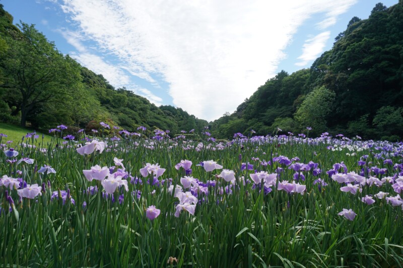 はままつフラワーパークのハナショウブ園は、周りを深い緑の森に囲まれた素晴らしい環境が魅力。