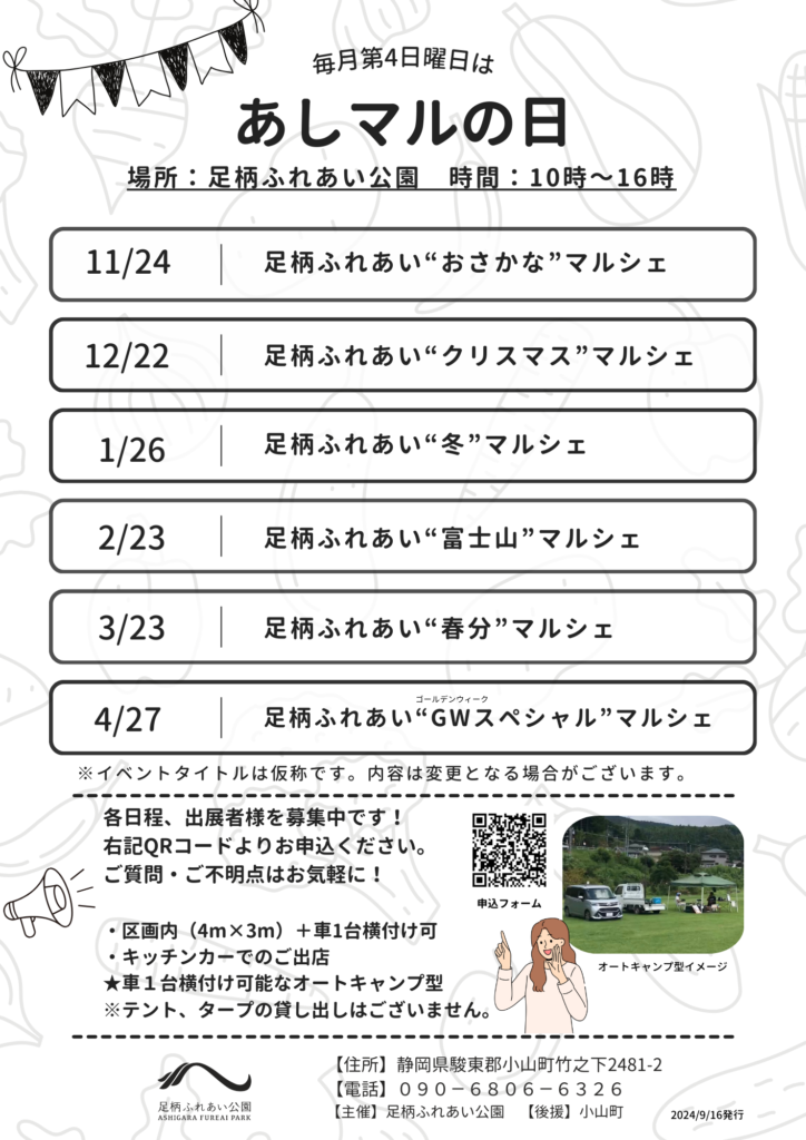 毎月第4日曜日は「あしマルの日」とし、足柄ふれあい公園でマルシェを開催しています。