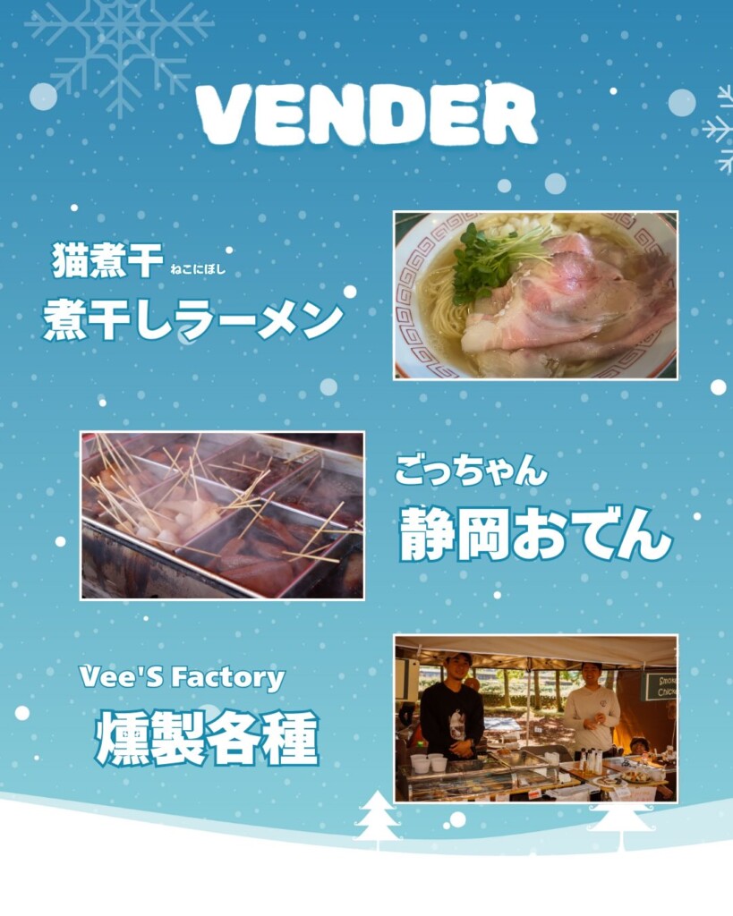 出店予定:静岡おでん「ごっちゃん」、燻製屋「Vee’s Factory」、沼津の名店「猫煮干」