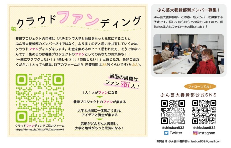 【浜松市中区】「静岡ぶん芸大 養蜂プロジェクト」クラウドファンディングのお願い!