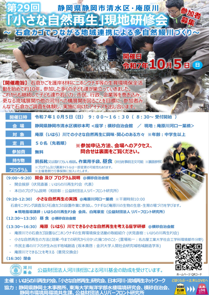 第29回「小さな自然再生」現地研修会in庵原川 を開催します!