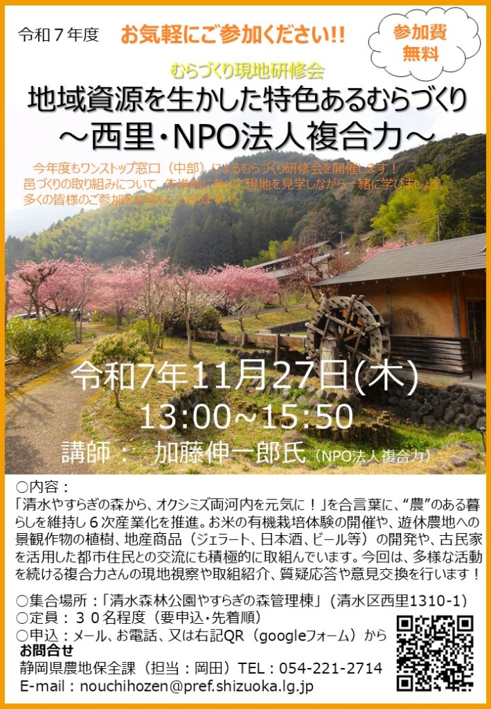 美しく品格ある邑登録地西里、静岡市清水区で活動している特定非営利活動法人複合力に学ぶ地域資源を生かしたむらづくり。