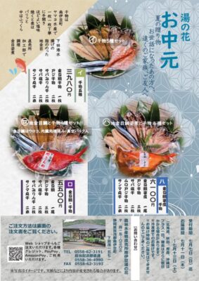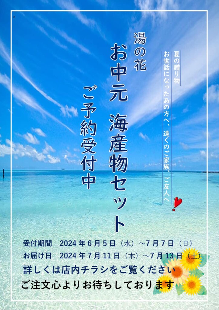 毎年好評の「湯の花お中元海産物セット」、7/7(日)まで予約を受け付けています!