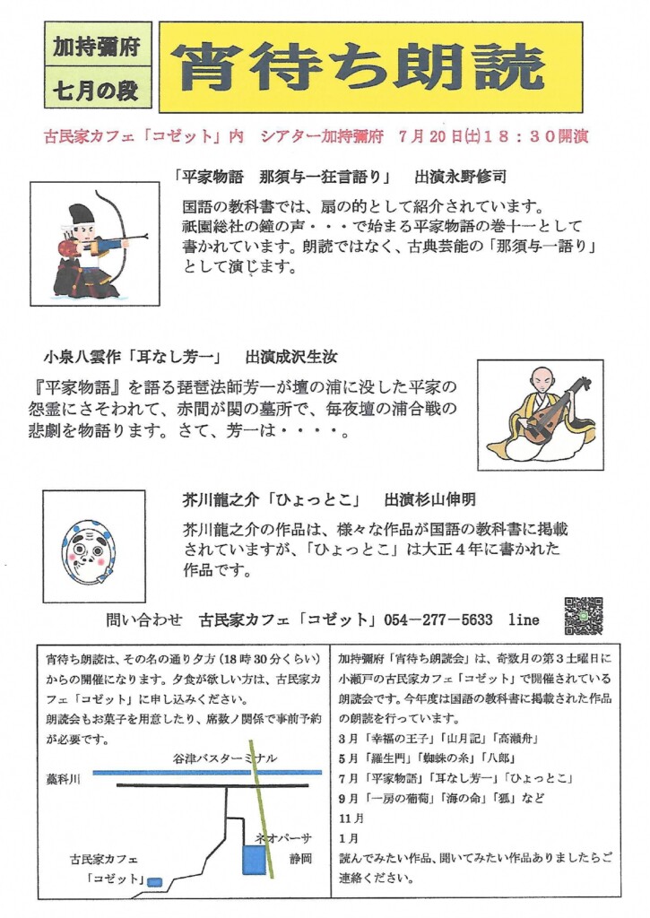 【静岡市】古民家カフェ・コゼット 宵待ち朗読 7月の段