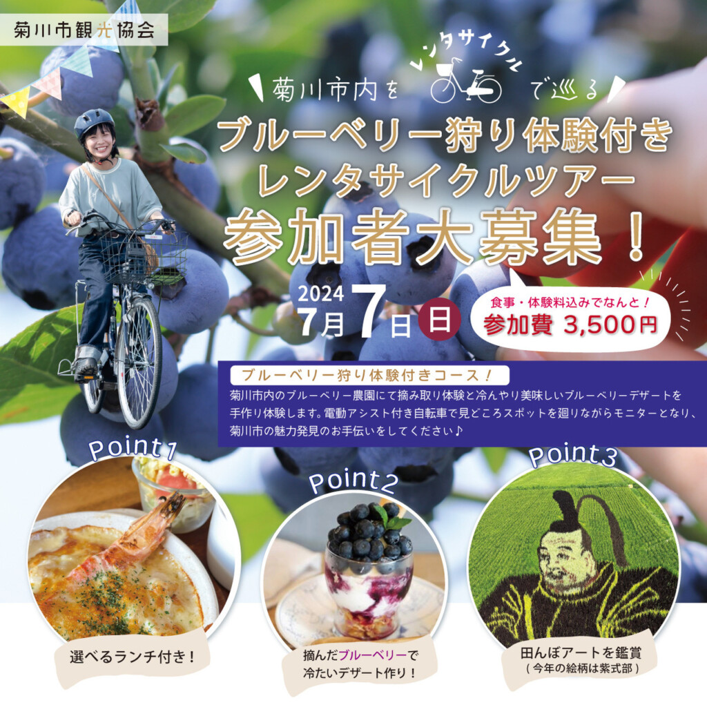 詳細はこちらから→ブルーベリー狩りと田んぼアート鑑賞のレンタサイクルツアー | 静岡県 菊川市観光協会|深蒸し茶発祥の地 (kikugawakanko.com)