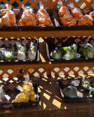 お店は、箱庭ならぬ箱菜園。BOX型の畑には季節のお野菜やハーブが植えられていてお店に訪れたお客さんに、季節の野菜が育っている姿を知ってもらい、収穫時期には収穫してもらったりと体験型のカフェになっています。また、店先には無人販売もあり、仲間のお野菜が販売されています。薬膳の勉強もしている方なので、最近では薬膳の勉強会も開催しているそうです。