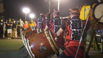 おまつりでは「御石曳」のほか、郷土芸能の熱川道灌太鼓の演奏や地元バンドの演奏なども行われる予定です。クライマックスには打上花火の連弾で、夜空を彩ります。