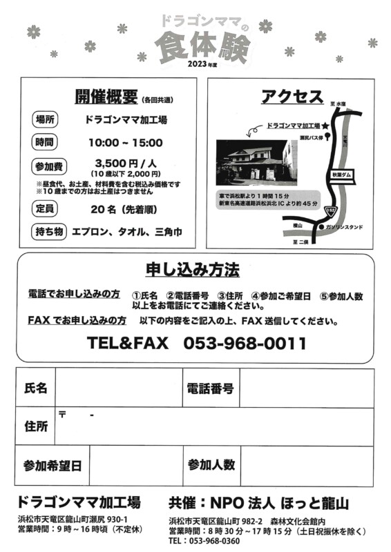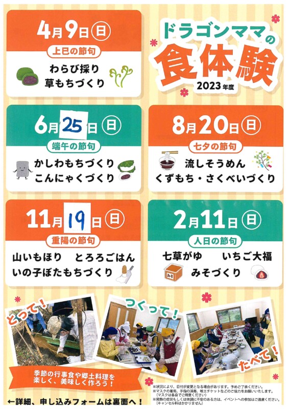 浜松市天竜区龍山にあるドラゴンママでは、年に5回ほど「食体験」のイベントを開催しています!