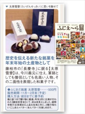 藤枝市のフリーマガジン情報誌のふじえ〜ら12月号にてえびすやさんのお菓子が掲載されました。