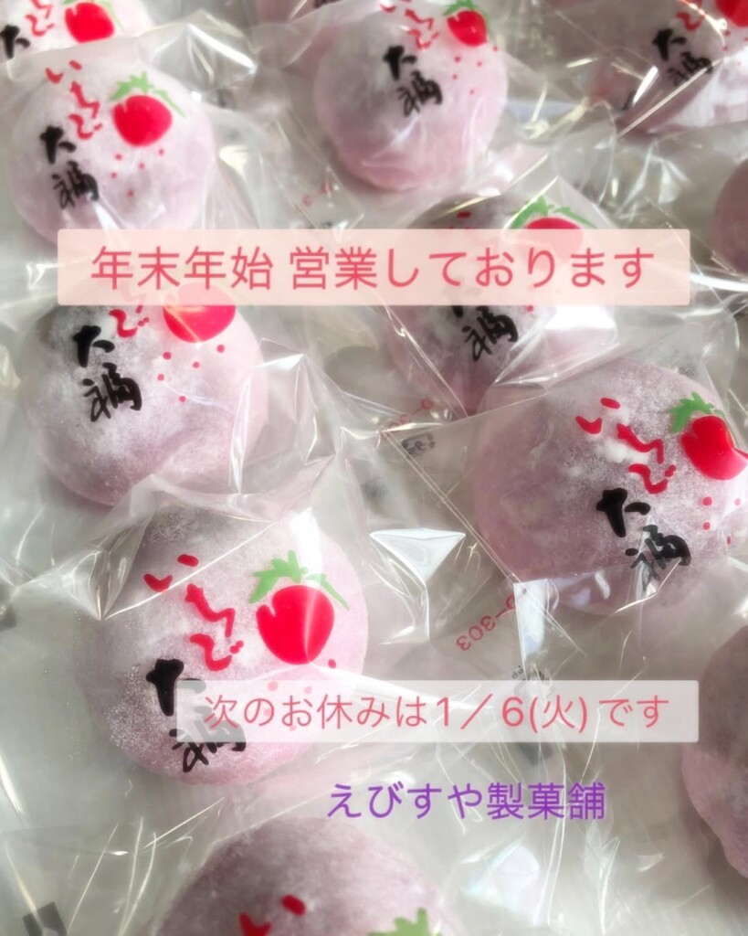 【藤枝市】えびすや製菓『いちご大福』年末年始も販売中!