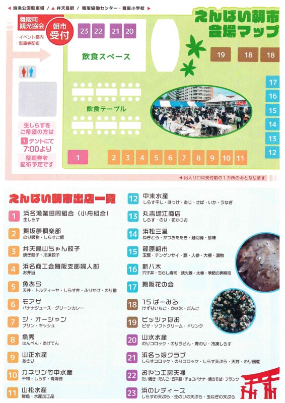 <主催> 舞阪えんばい朝市実行委員会 TEL:053-592-0757