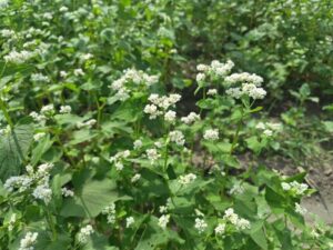 そばの花が見頃を迎えていると、