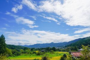 点在する「南条の里」とヒガンバナ咲く「天子ヶ