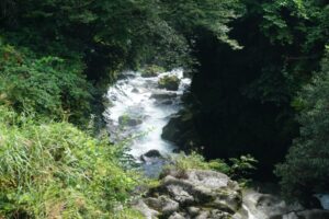 を渡るときの川からあがってくる冷気は、汗ばんだ