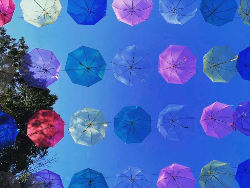 「アンブレラスカイ」とは、頭上に華やかな傘を