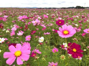 コスモスの種を蒔き、10月中旬以降にはコスモス畑が見ごろになる予定です。