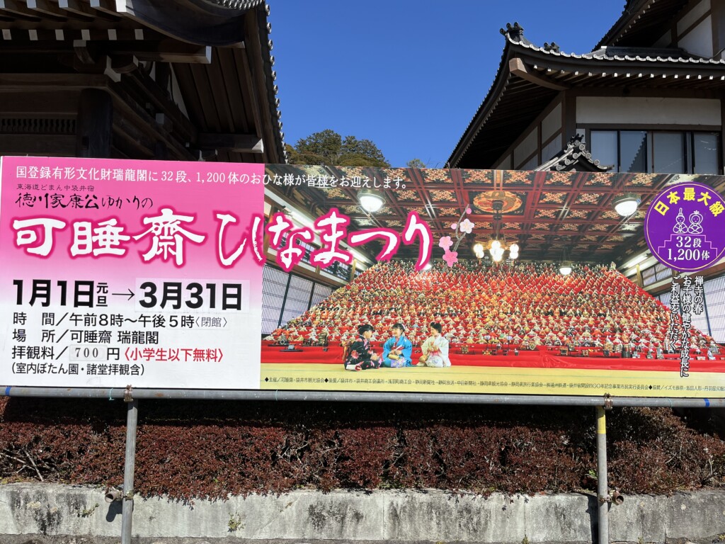 ふくろい遠州の可睡斎では恒例となりました日本最大級の「ひなまつり」が1月1日~3月31日まで開催されています。