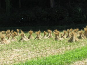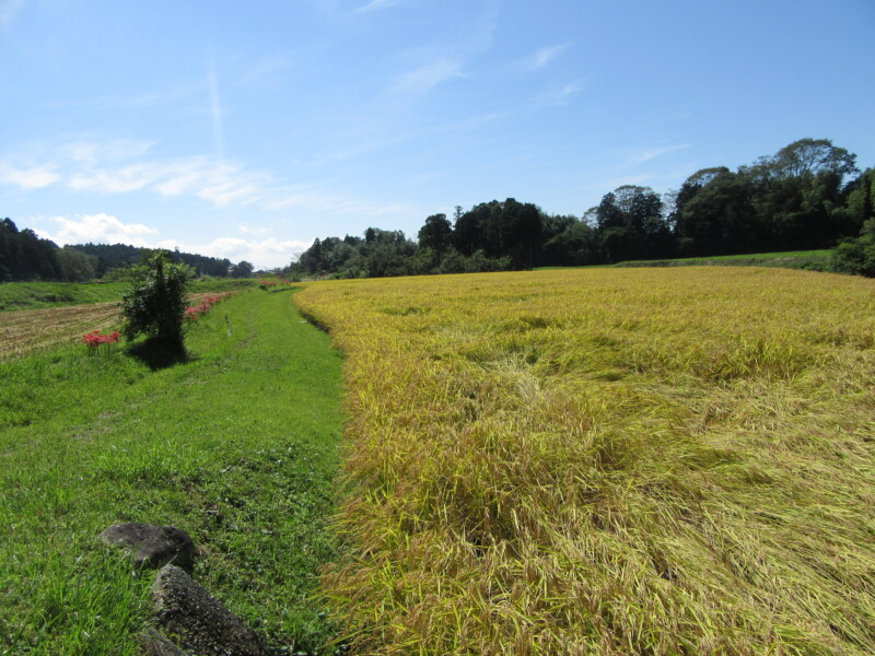 吹いて、稲穂がゆらゆらさわさわ揺れています。