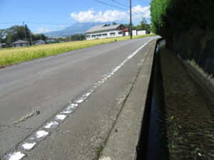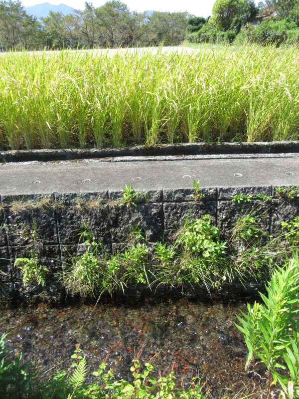 田んぼの周りに勢いのあるきれいな水が流れていま