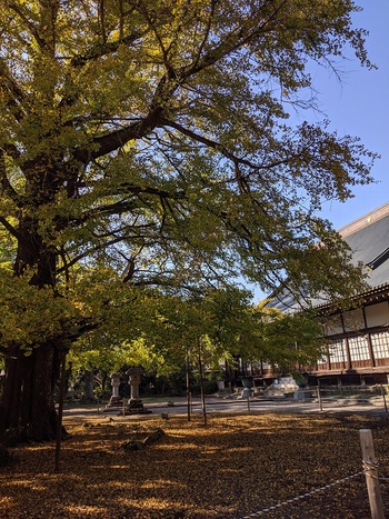 西山本門寺の大イチョウが黄葉を迎える11月に