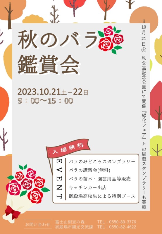 樹空の森」で「秋のバラ鑑賞会」が開催されます。