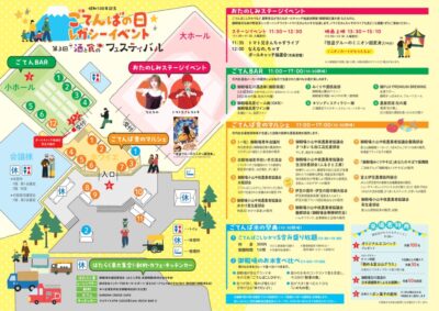 御殿場市民会館を会場に、大ホールではステージイベントや映画上映、ごてんばこしひかりや水かけ菜、クラフトビールなど豪華景品が当たるボールキャッチ抽選会が行われます。