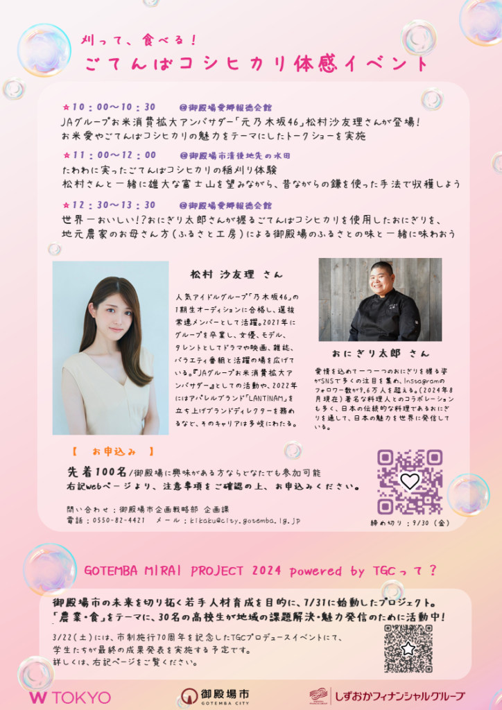このイベント、GOTEMBA MIRAI PROJECT2024 powered by TGCの企画の一環として行われます。