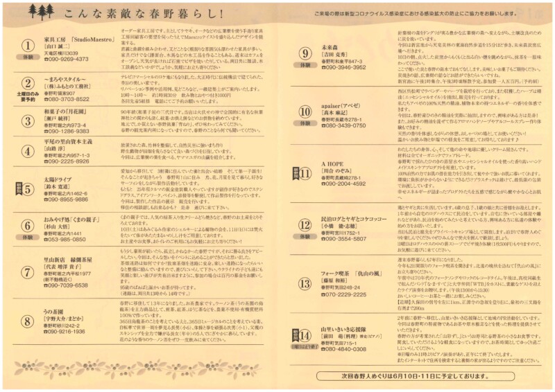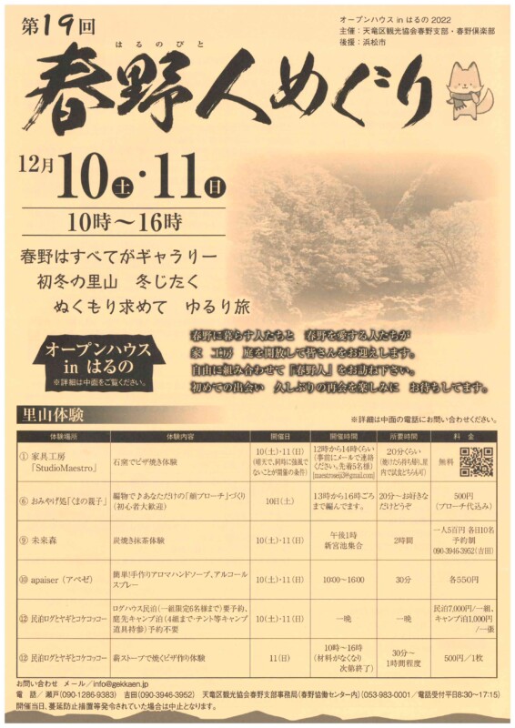 春野に暮らす人たちと 春野を愛する人たちが 家 工房 庭を開放して皆さんをお迎えします。