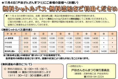 戸田地区内の皆様は、無料渡船またはシャトルバスでのご来場をお願いいたします。