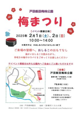 【沼津市】「戸田新田梅林公園 梅まつり」開催!