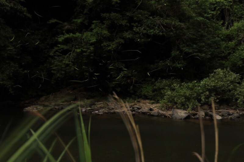 フルーツパークの隣を流れる都田川に生息するホタルを、園内から川原に降りて鑑賞できます。
