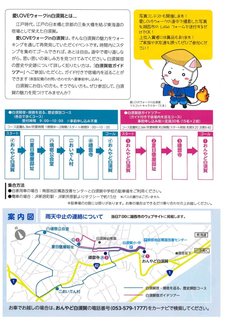 愛LOVEウォークin白須賀実行委員会事務局(湖西市文化観光課内 平日8:30~17:15)
