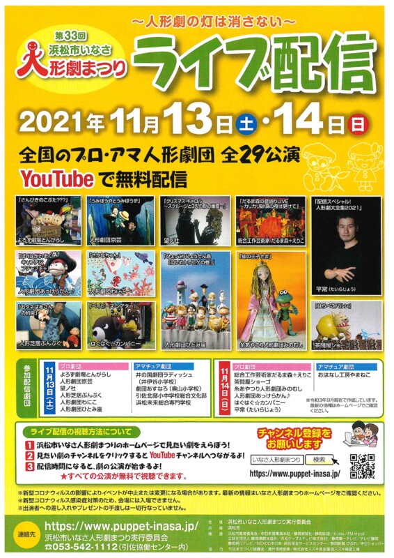第33回 浜松市いなさ人形劇まつりが、ライブ配信されます!