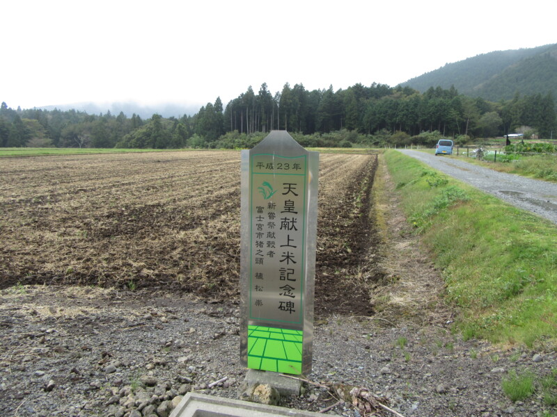 を指さして、天皇献上米のプレートがあるから見