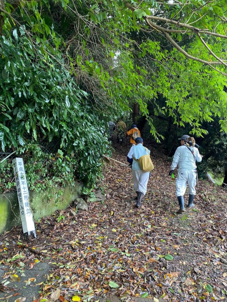 11月1日も、狼煙台のある石会合山への方ノ上登り口からと畑総道路からの山道と、2つに分かれての作業が行われました。