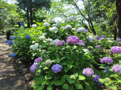 バラの見頃は終盤を迎え、アジサイが咲き始めています。