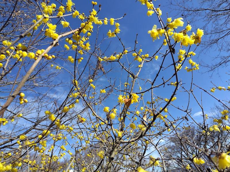 広い敷地の高台にあるパノラマ展望台付近の“慈愛の丘”に幾本ものロウバイが植栽されています。 黄色い可愛らしい花からは、甘い香りが漂い癒してくれます。 見頃は2月上旬ごろまで。