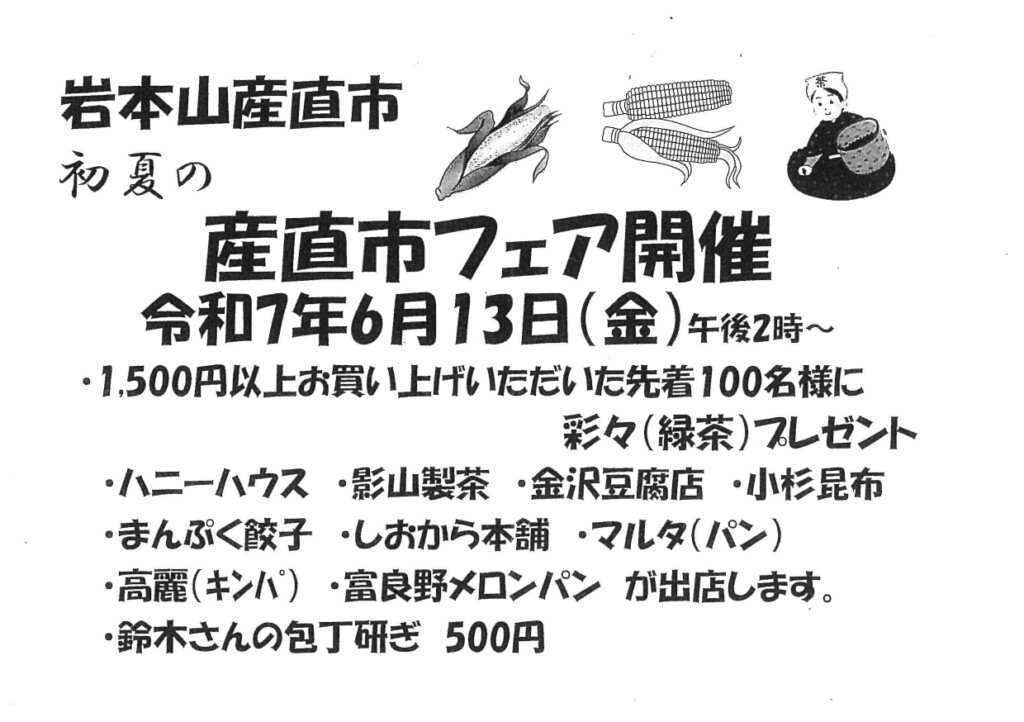 また6月13日㈮には岩本山産直市前で「産直市フェア」を開催!