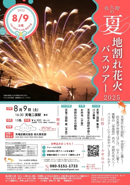 【浜松市天竜区】中部まつり 地割れ花火大会バスツアー開催!