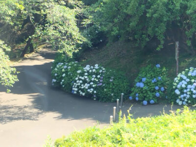 テラス席、カウンター席からは、公園内のアジサイを見ることもできました。