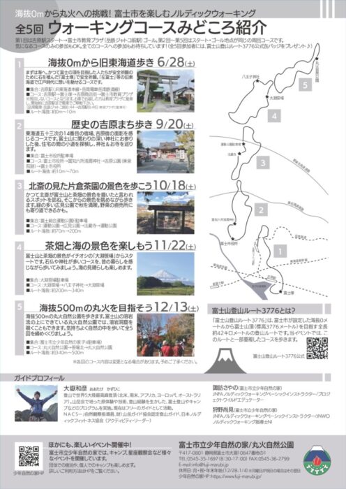 ガイドと共に富士市の名所を巡りながら、海抜0mから500mを全5回に分けて無理なく楽しく歩きます。