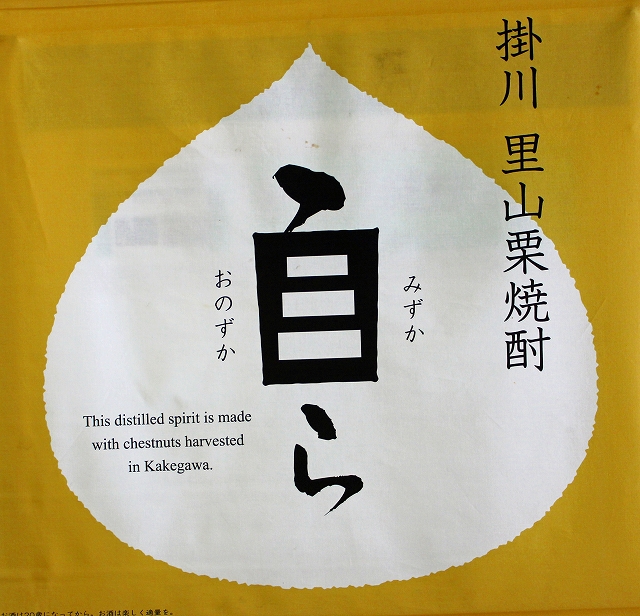 近年顕著になってきた掛川の里山における栗のイノシシ被害、農家における後継者不足と栗畑の放置、特産でありながら栗が素材生産の域を出ないこと、などの状況を理解し(おのずから)、新たな次元で作物と鳥獣と営みの関係をつくりたい(みずから)という考えを、栗焼酎の名前に託し、日本人の優れた自然観と人生観との融合感覚を、あらためて喚起していきます。