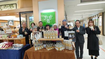 栗焼酎『自ら』の新酒のお披露目が2023年12月5日JR掛川駅構内の「これっしか処」で行われました。お披露目ではみなさんに試飲して頂き、今年の栗焼酎はより栗のかおりとあまみが出ていると高評価です!