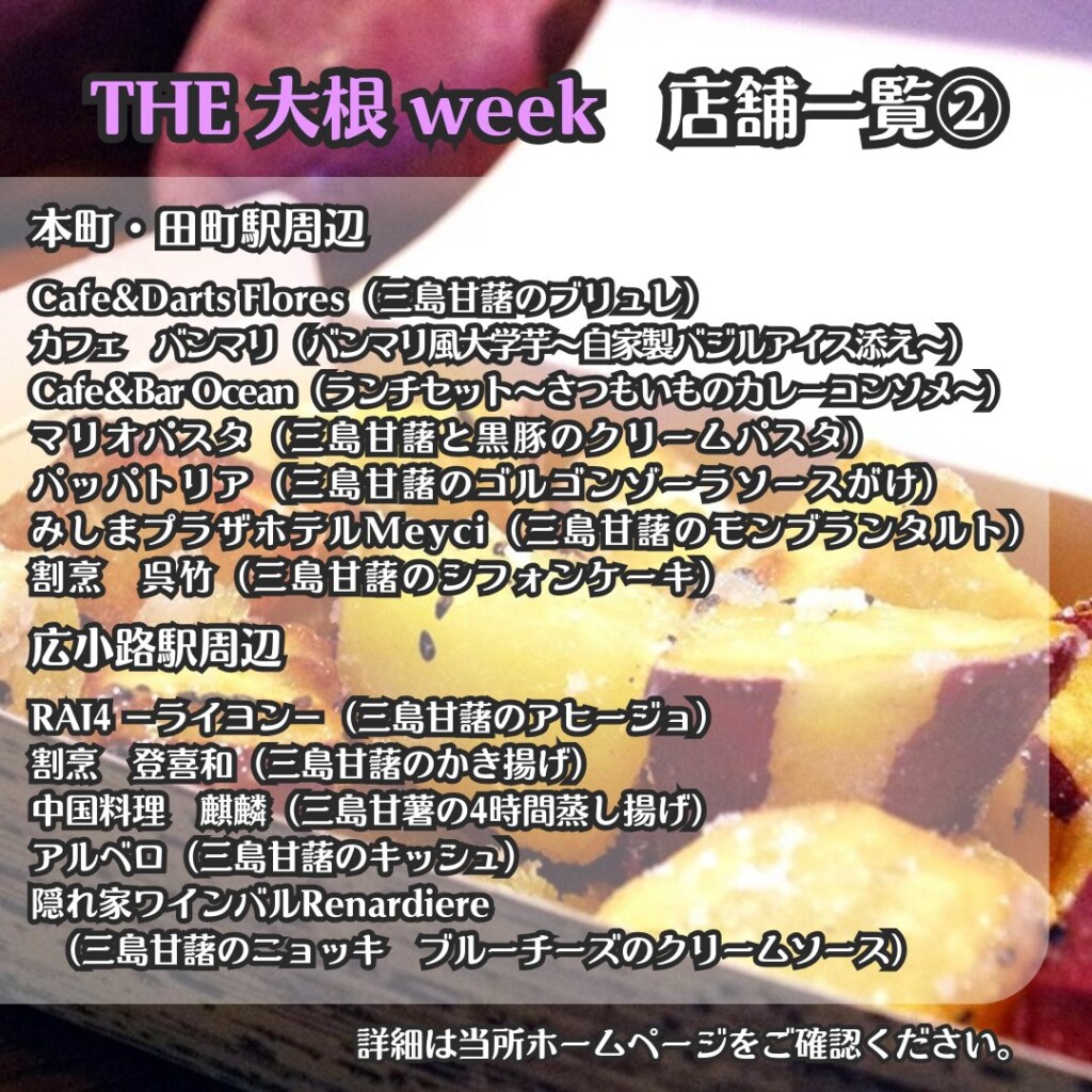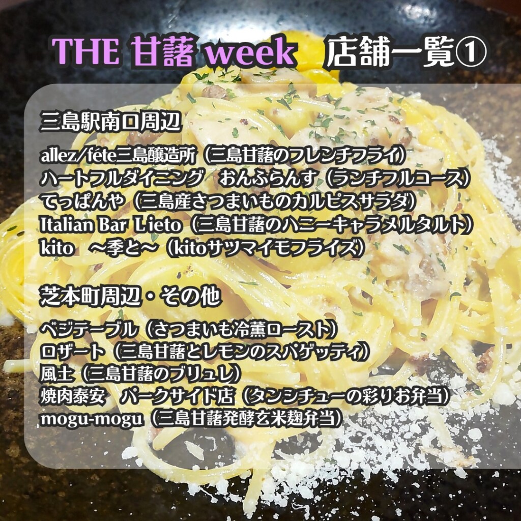 イベント期間内、week参加飲食店が三島甘藷(さつまいも)を使用した料理を提供します。